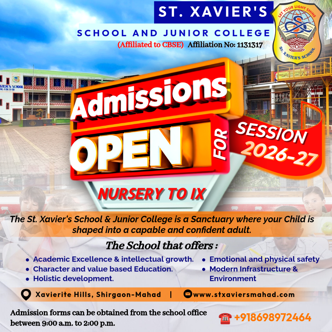 St. Xavier’s education society is the only catholic education organization (in Mahad and it’s vicinity) established in Mahad which has a negligible Christian population. We the management of St. Xavier’s education society associated with the intention of catering to the quality education needs of the community. While we were working with different schools in Mahad, there was a constant demand from the local people for a ‘Catholic school ‘, which are often known for their quality and dedicated services. This support and demand of people led St. Xavier’s school to emerge and flourish to the present status.